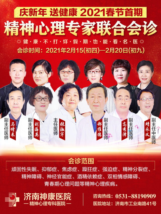 为了保障春节期间患者的问诊需求,秉承着“康复一个患者 幸福一个家庭”的宗旨,济南神康医院2月15日-20日年后首场精神心理专家会诊即将温暖开启,为精神心理疾病患者的康复做出实际有效的帮助,平时抢不到号的、没时间看病的,这次千万要抓住机会!让名医专家好好给你瞧一瞧。