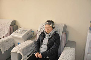 患者在体验rTMS经颅磁治疗仪