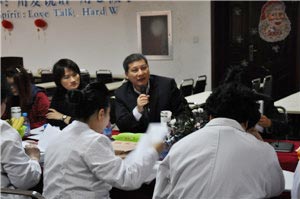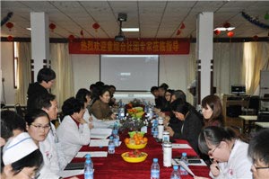 后,在医院五楼多媒体会议厅内,考察团人员与院领导、各病区主任医师、门诊专家、各病区护士长等相关人员进行终的详细讨论。参会人员还一起观看了由台湾专家团带来的医疗视频。张胜利博士对视频中出现的一些治疗和护理知识提出了自己的观点,并指出一些护理和治疗中常见的错误,避免医院各部门人员在实际情况中出现此类问题。