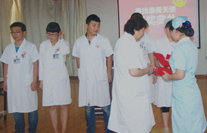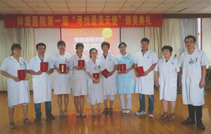 张院长为获奖者颁奖,希望她们不骄不躁,做好自己,全心全意为患者服务。