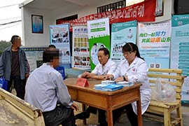 经过三个多小时的车程,我们终于赶到了青杨峪村,虽然一路上颠簸风尘,但是依旧磨灭不了我们对于义诊的热情。一下车,我们便迅速的将展架和宣传资料安置好,村支书也打开喇叭喊道“济南神康医院的专家到了,有头疼、失眠、抑郁、焦虑的乡亲赶紧来村委会”。不一会,我们的问诊台前便挤满了前来咨询的患者和家属。